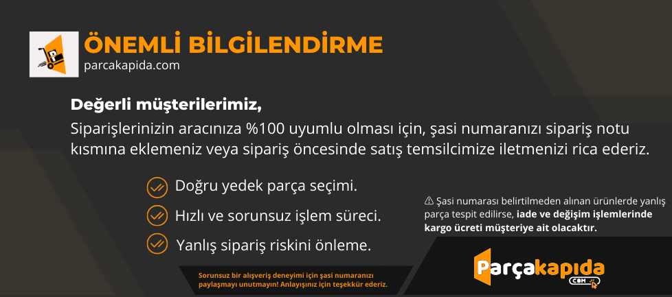 - Orijinal ve Kaliteli Ürünler: Aracınıza uygun, güvenilir yedek parçalar.